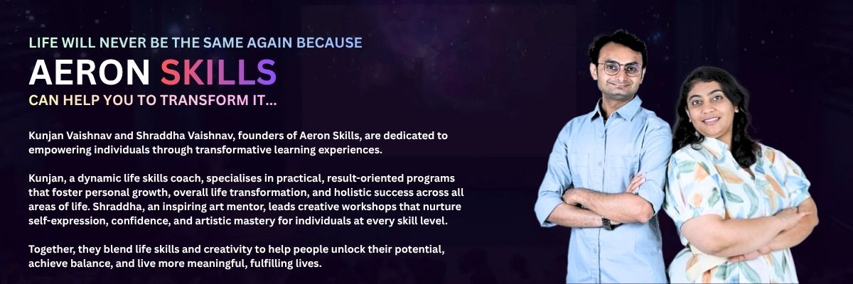 Welcome to Aeron Skills Limited, where we believe in the power of continuous learning, personal growth, and meaningful transformation. Founded by visionary leaders Kunjan Vaishnav and Shraddha Vaishnav, our mission is to empower individuals and organizations to unlock their fullest potential. We offer a diverse range of meticulously designed workshops and training programs that are crafted to inspire and elevate every aspect of your life.